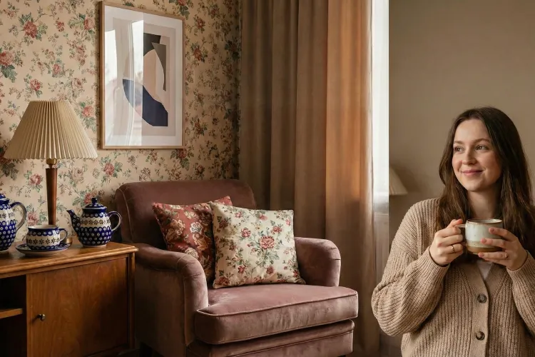 Ale uwaga – styl Grandmillennial to nie rekonstrukcja historyczna. To nie jest mieszkanie zamienione w skansen. To sztuka eklektyzmu: umiejętne łączenie nowoczesnej, wygodnej bazy (np. prosta sofa, jasne ściany) z elementami „z duszą”, które budzą sentyment.